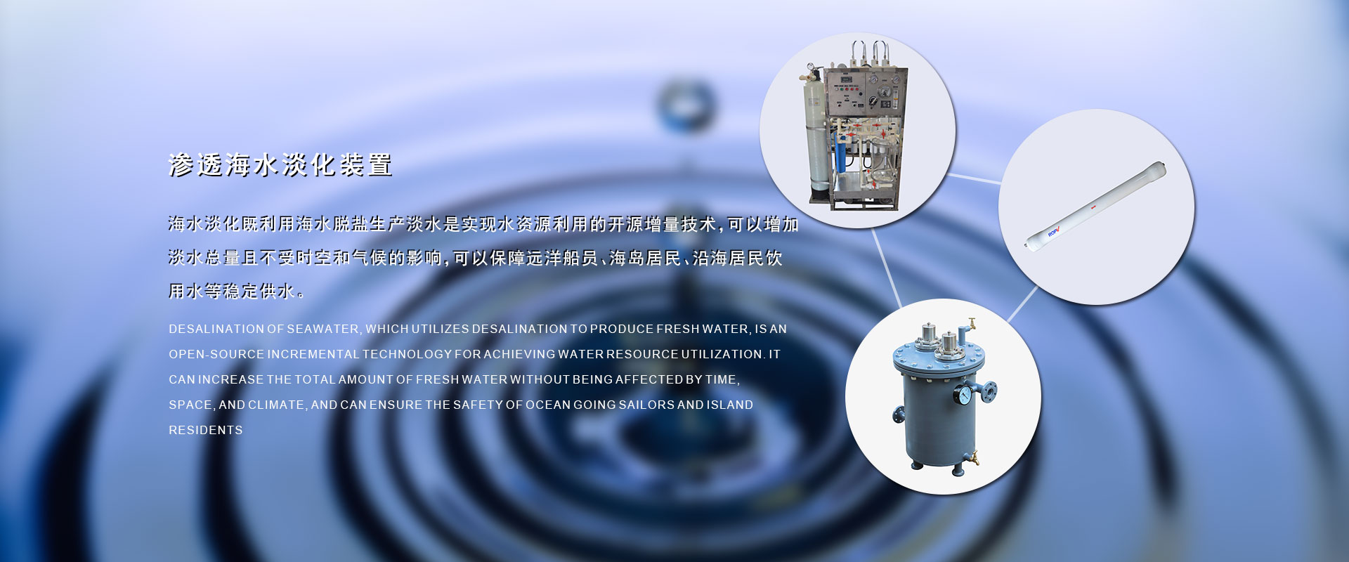 在過(guò)去的17年里我們?yōu)榇疤峁┖KO(shè)備解決了因船的續(xù)航長(zhǎng)而不能解決的淡水問(wèn)題,全球的水資源越來(lái)越少,我們以改善遠(yuǎn)洋船員、海島居民的生活水資源為已任,以科技創(chuàng)新、誠(chéng)信經(jīng)營(yíng)為核心競(jìng)爭(zhēng)力。